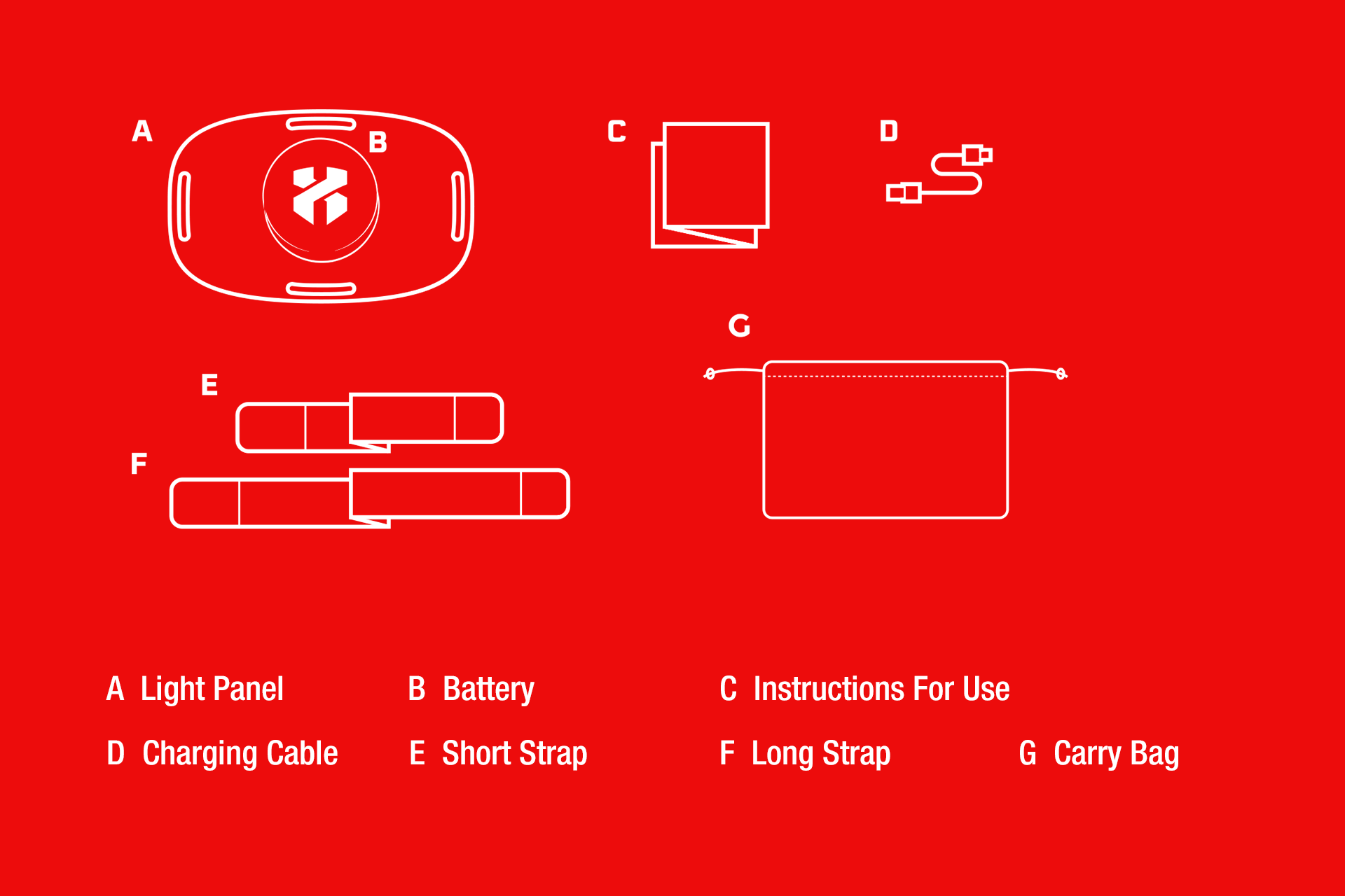 The Lumaflex Essential package includes everything you need for portable red and near-infrared light therapy. Inside, you will find a wearable red light therapy panel, a revolutionary device designed for consistent daily use.